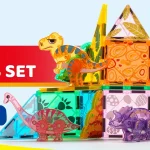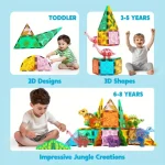 Dinosaur Scenarios: This set features 5 adorable dinosaurs and various patterned magnetic building tiles, allowing kids to create imaginative dinosaur-themed scenes. The different combinations of magnetic building tiles and colors enable children to build multiple exciting dinosaur environments.