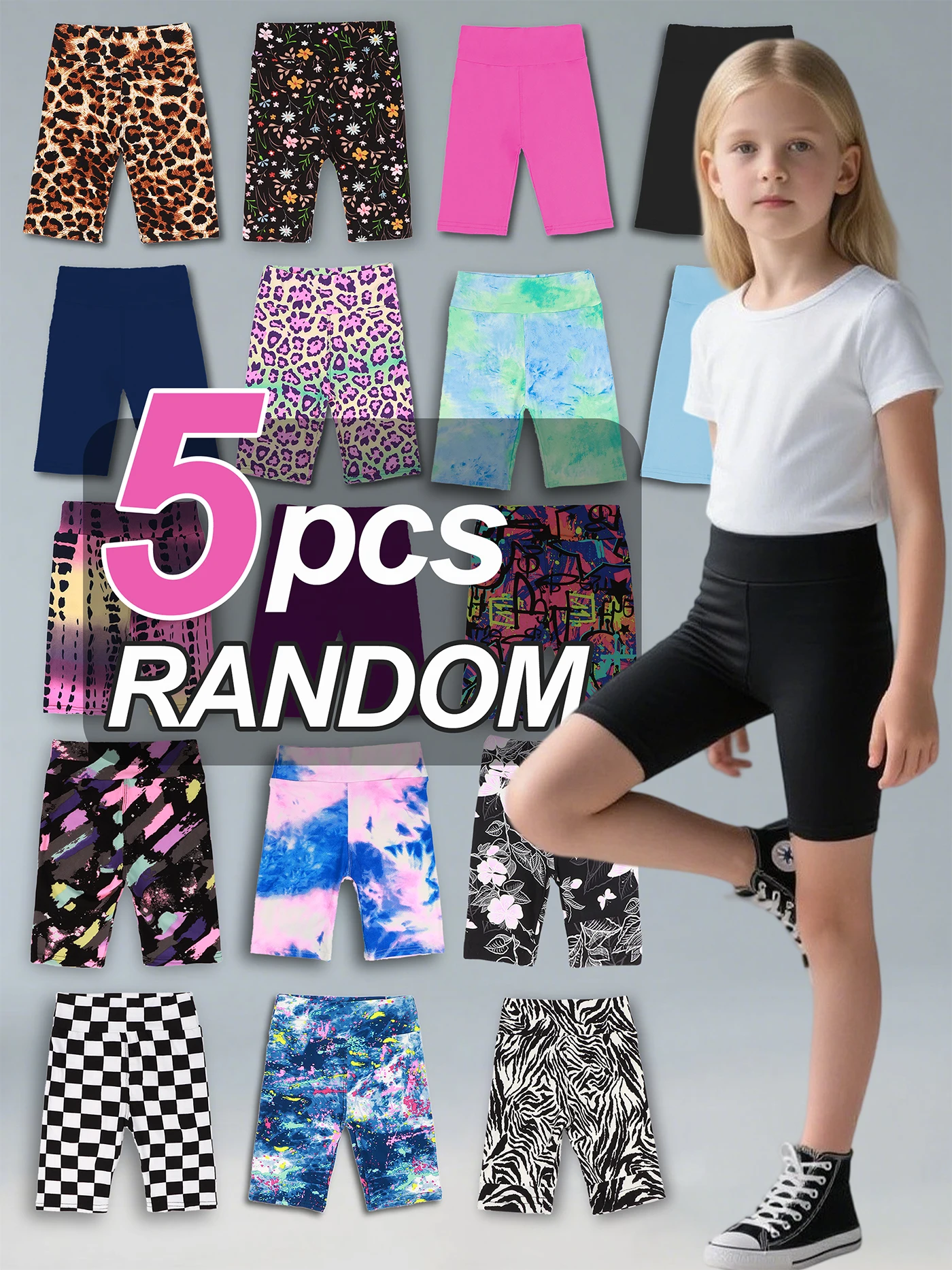 Random 5pcs girls yoga biker shorts,